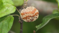 Если гнилое яблоко продолжает оставаться на дереве, то по плодоножке грибок попадает в ветку, что приводит к поражению соседних побегов.
