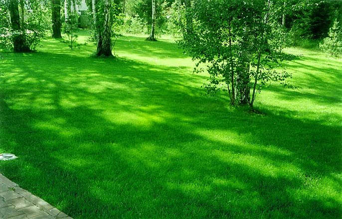 Впрочем, сделать хороший газон при недостатке солнца даже из овсяницы – задача не из легких. Сторонники мятлика считают просто – не растет мятлик в тени, значит там газон и не нужен. Вообще, мятлик с овсяницей уживаются хорошо, дополняя друг друга в разные моменты жизни. Наступает засуха – мятлик прячется, давая возможность покрасоваться овсянице, а в холодную погоду, наоборот, прикрывает свою подругу, поэтому один и тот же газон может в разное время выглядеть то мятликовым, то овсяничным.