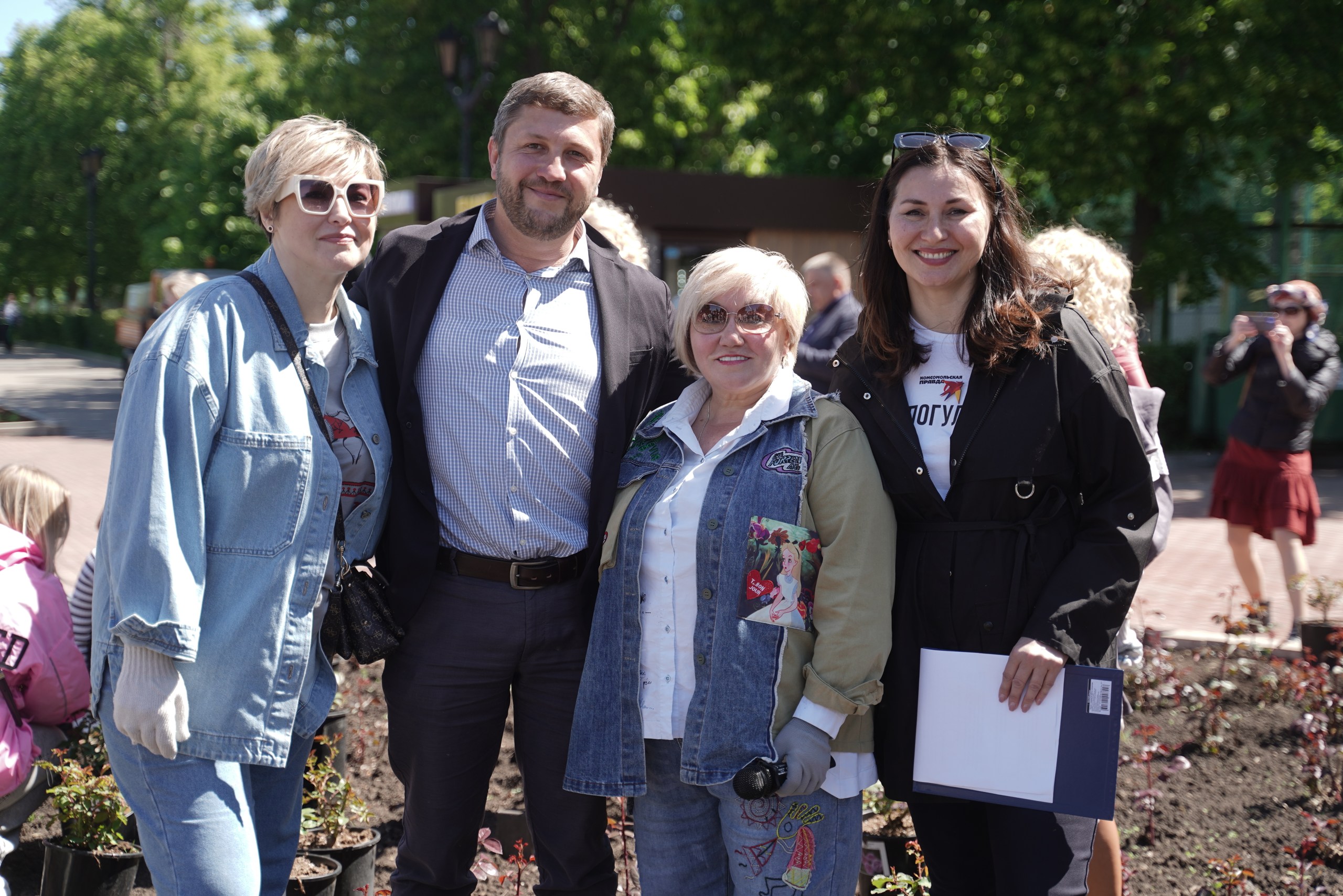 Торжественная посадка роз на Набережной в честь дня рождения Комсомольской правды.