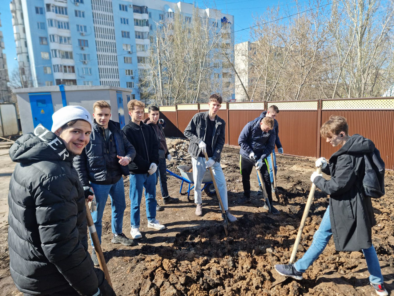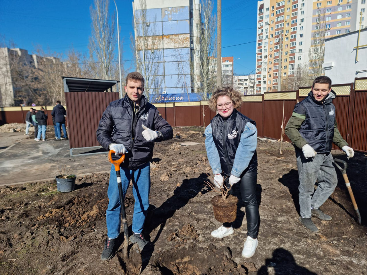 Посадка растений – озеленение возле нового корпуса больницы