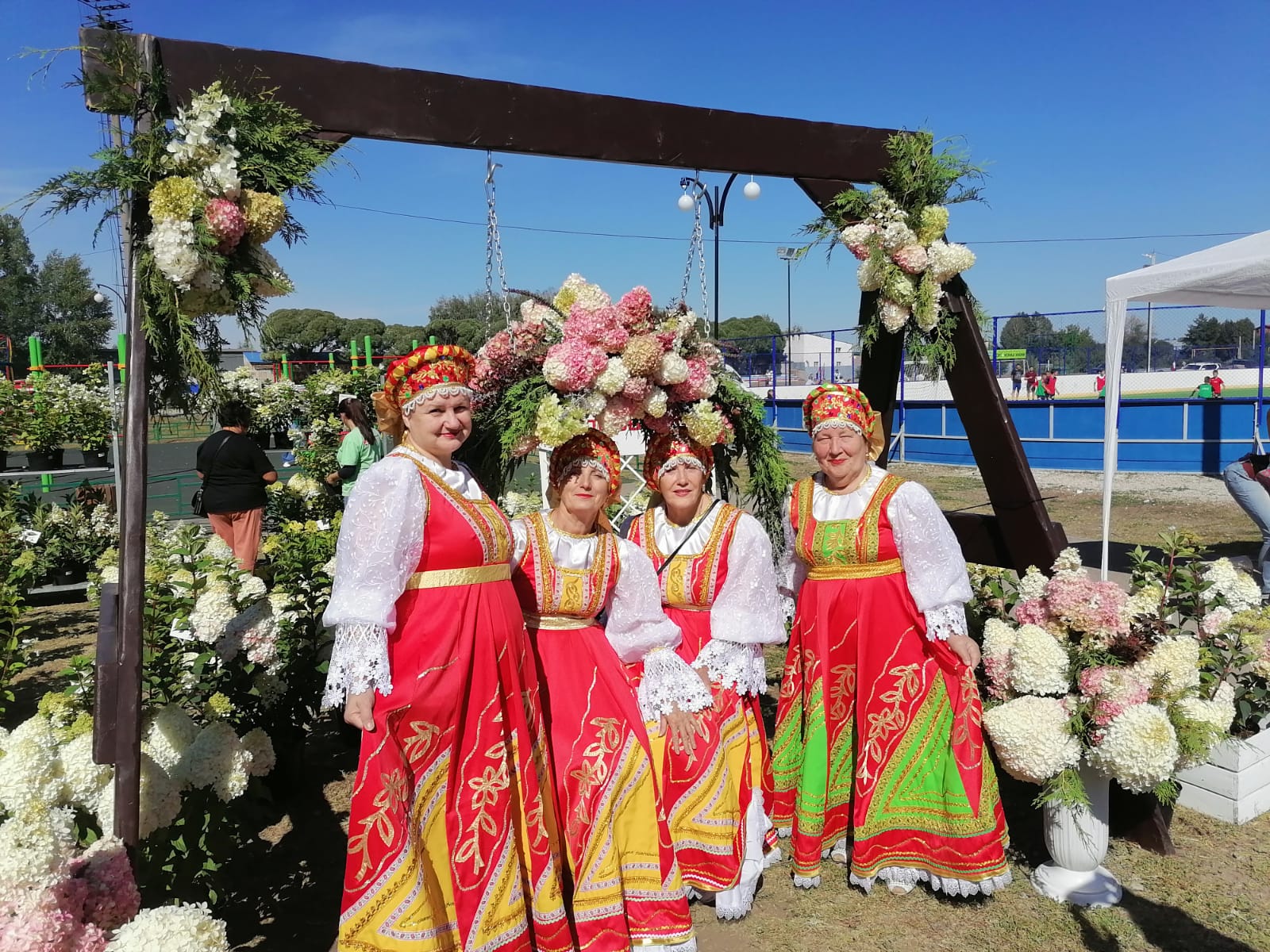 На наших цветочных качелях, хочется сфотографироваться каждому гостю
