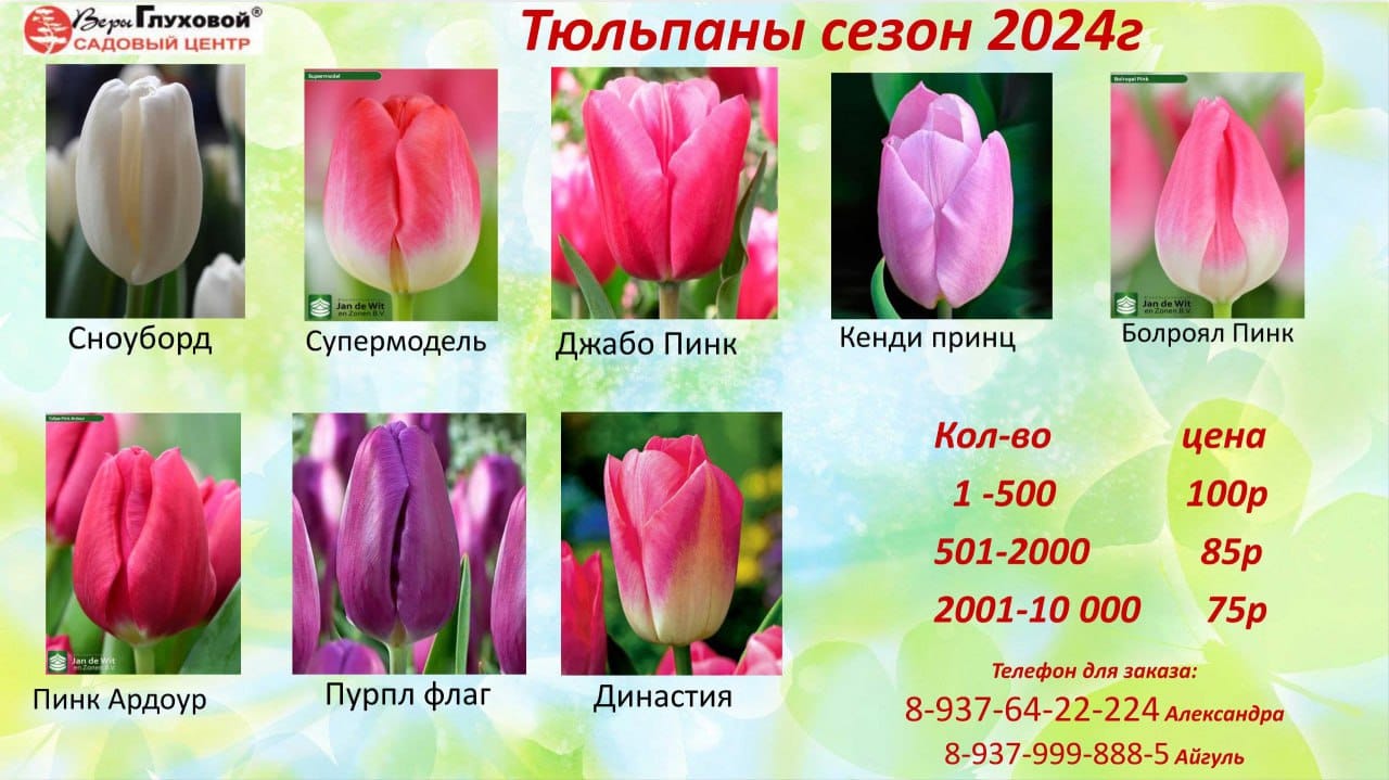 Садовый центр Веры Глуховой предлагает 17 СОРТОВ ТЮЛЬПАНОВ к 8 марта!
